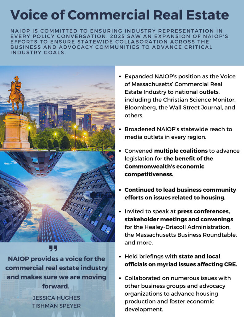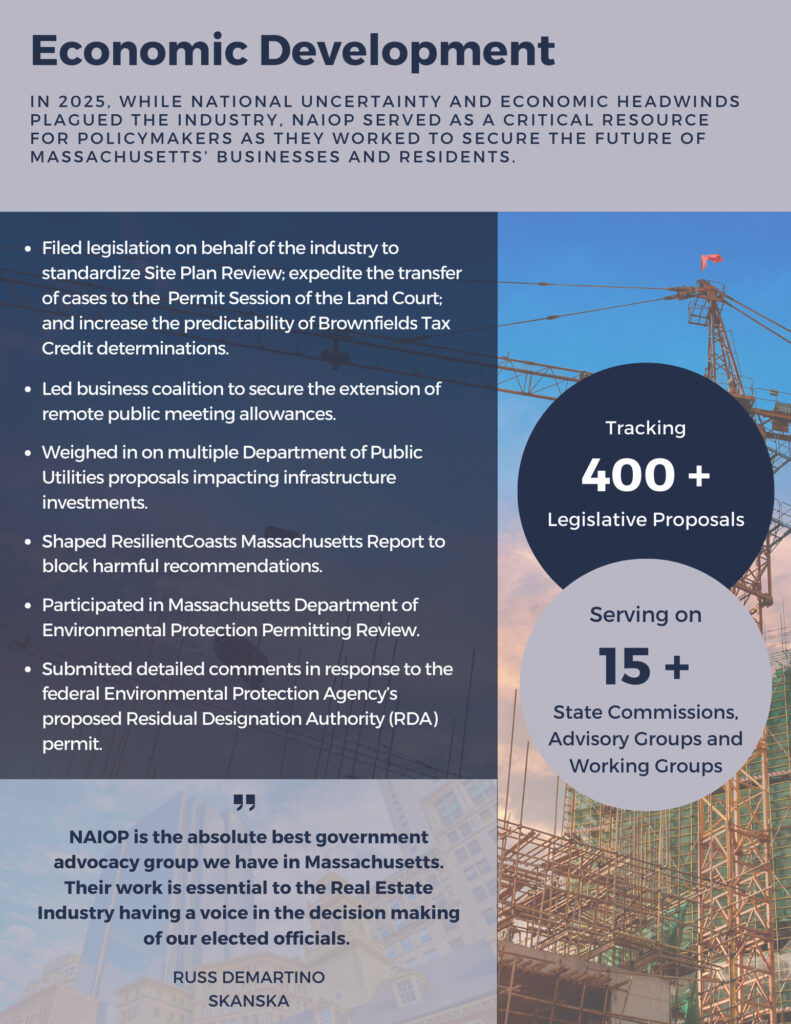 Interested in shaping NAIOP’s advocacy work? NAIOP members are encouraged to join the Government Affairs Committee. For more information, contact Anastasia Daou, NAIOP’s SVP of Policy & Public Affairs.
